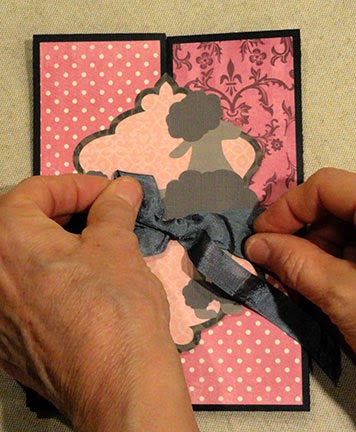 To secure the card in the closed position, bring the ribbon ends to the front and tie in a bow.